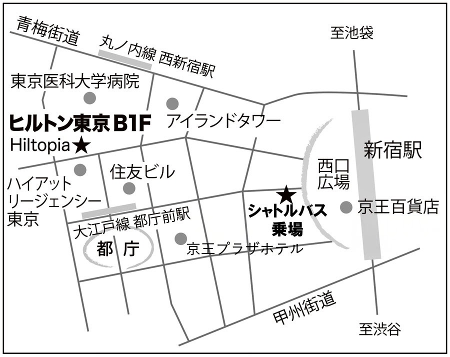 アクセス 新宿駅西口よりシャトルバス運行